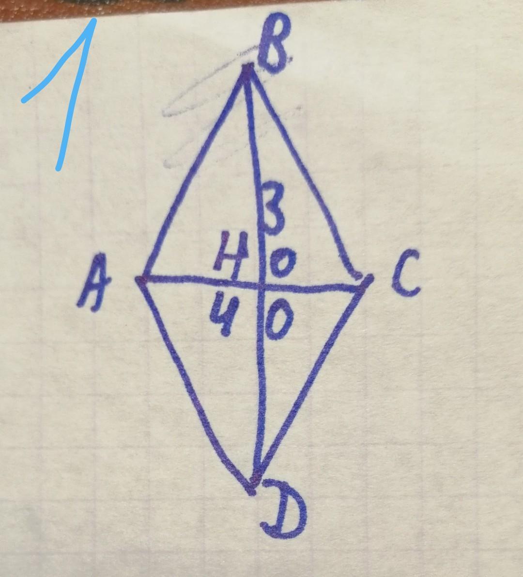 1). АС перпендикулярен ВD т.к. АВСD - ромб (Н - точка пересечения диагоналей)