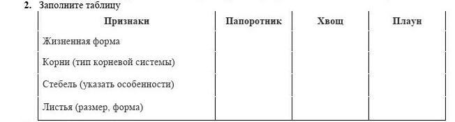 Характеристику растений найдёте на фотографии. Важно отметить, что все упомянутые растения являются споровыми.