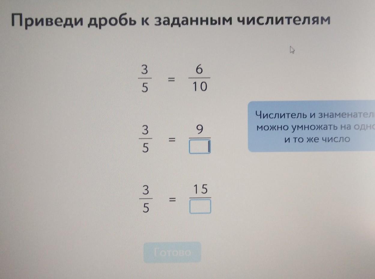 Т.е 6:3=2, 10:5=2 ,отсюда делаем вывод, что всего навсего нужно второй числитель делить на первый, тем самым узнаём второй множитель.