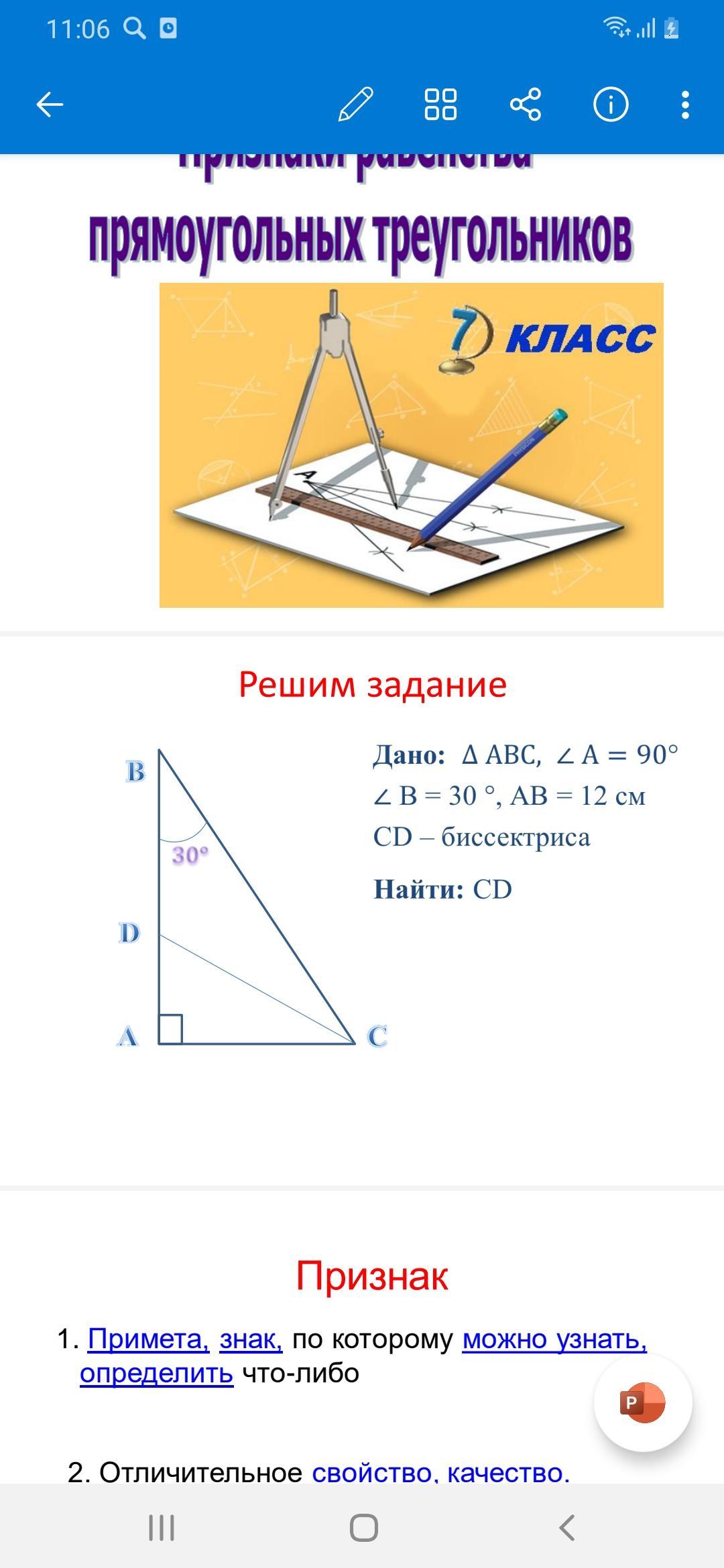ΔАСД-прямоугольный, cos30=АС/СД √3/2=(12/√3)/СД, СД=8смс