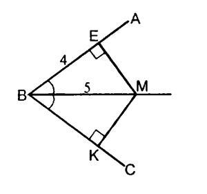 Дан угол АВС. ВМ - биссектриса угла АВС. Найдите длину МК, если ВЕ = 4 см, ВМ = 5 см.