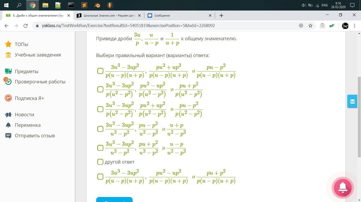 СРОЧНО!!!! ДАЮ 35 БАЛЛОВПриведи дроби 3up , uu−p и 1u+p к общему знаменателю.