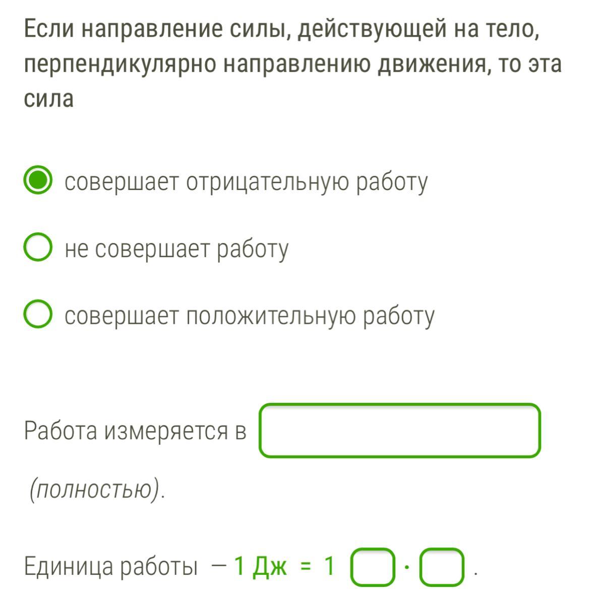 не совершает работу, измеряется в Джоулях, 1Дж = 1Н*м