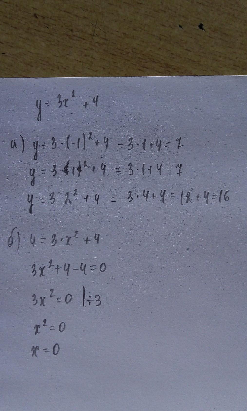Функцію задано формулою у=3х(в квадраті)+4. Знайдіть: