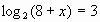 log2(8+x)=3 8+x=2 в 3 степени 8+x=8 x=0 x>-8 x=0