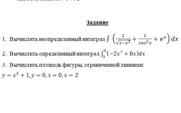 3)S=ИНТ.(от 0 до2)(x^3+1)dx=(x^4/ 4 + x)I(от 0 до2)=16/4+2-0=6