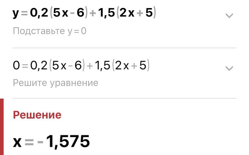 у = 0,2(5х - 6) + 1,5(2х + 5).