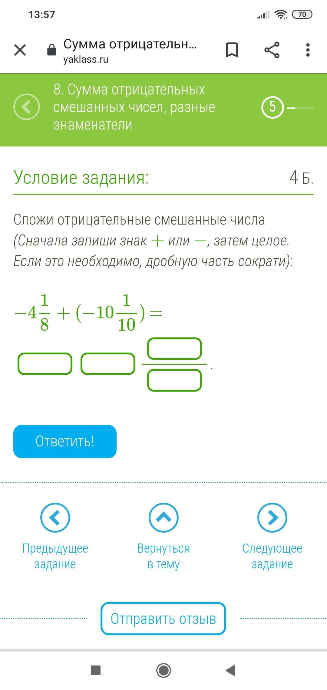 Сложи отрицательные смешанные числа