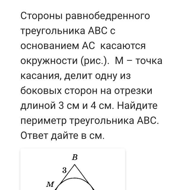 ΔАВС-равнобедренный ⇒ВА=ВС=7 см, значит РС=4 см.