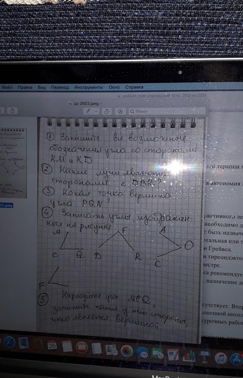 5) ∠MCQ нарисован у вас в четвёртом пункте. Стороны: CM и CQ , вершина - C .