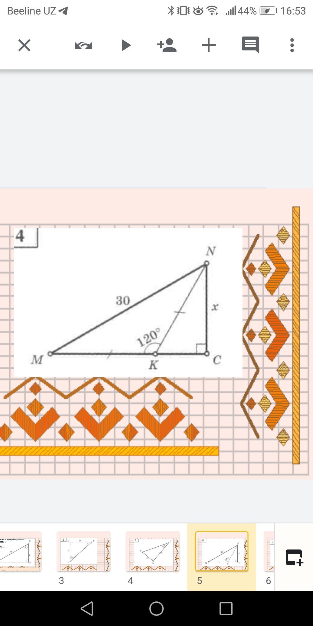 2) Т.к уголNMK=30°, а угол NCM=90° можем найти третий угол => угол MNC=180-(90+30)=180-120=60