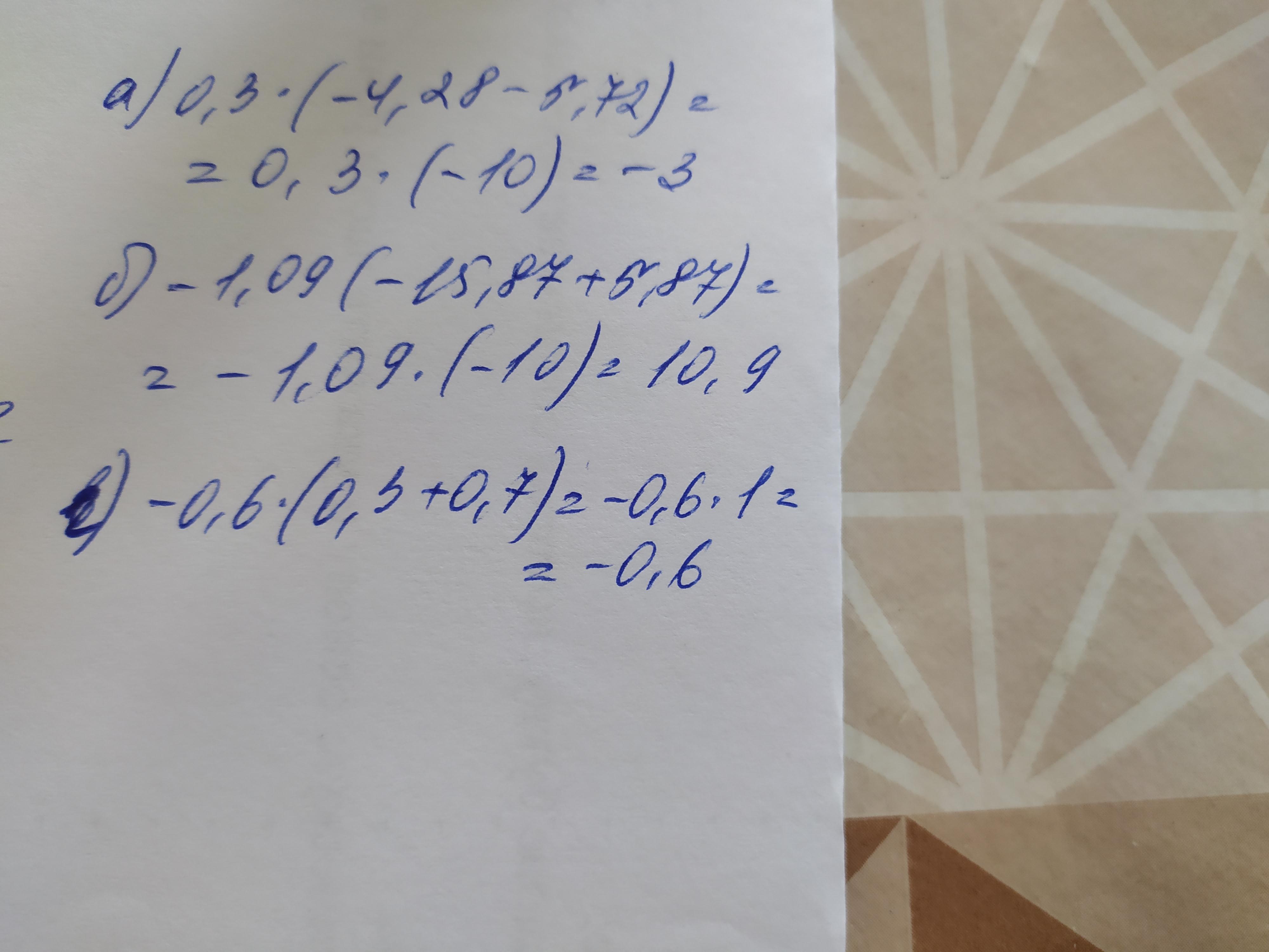 а) 0,3∙(-4,28)+0,3∙(-5,72)