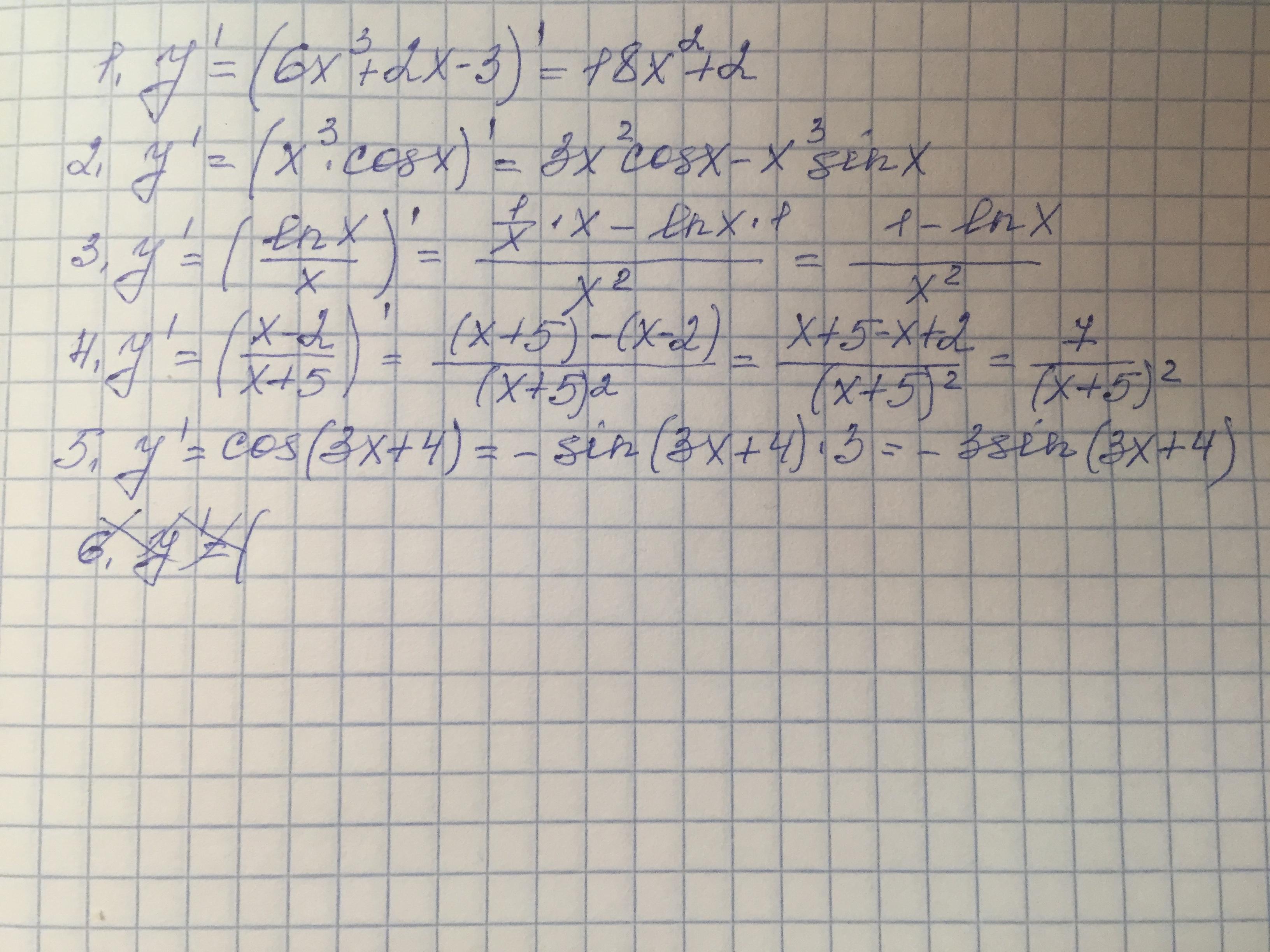 5)y'=cos(3x+4)=-3sin(3x+4)