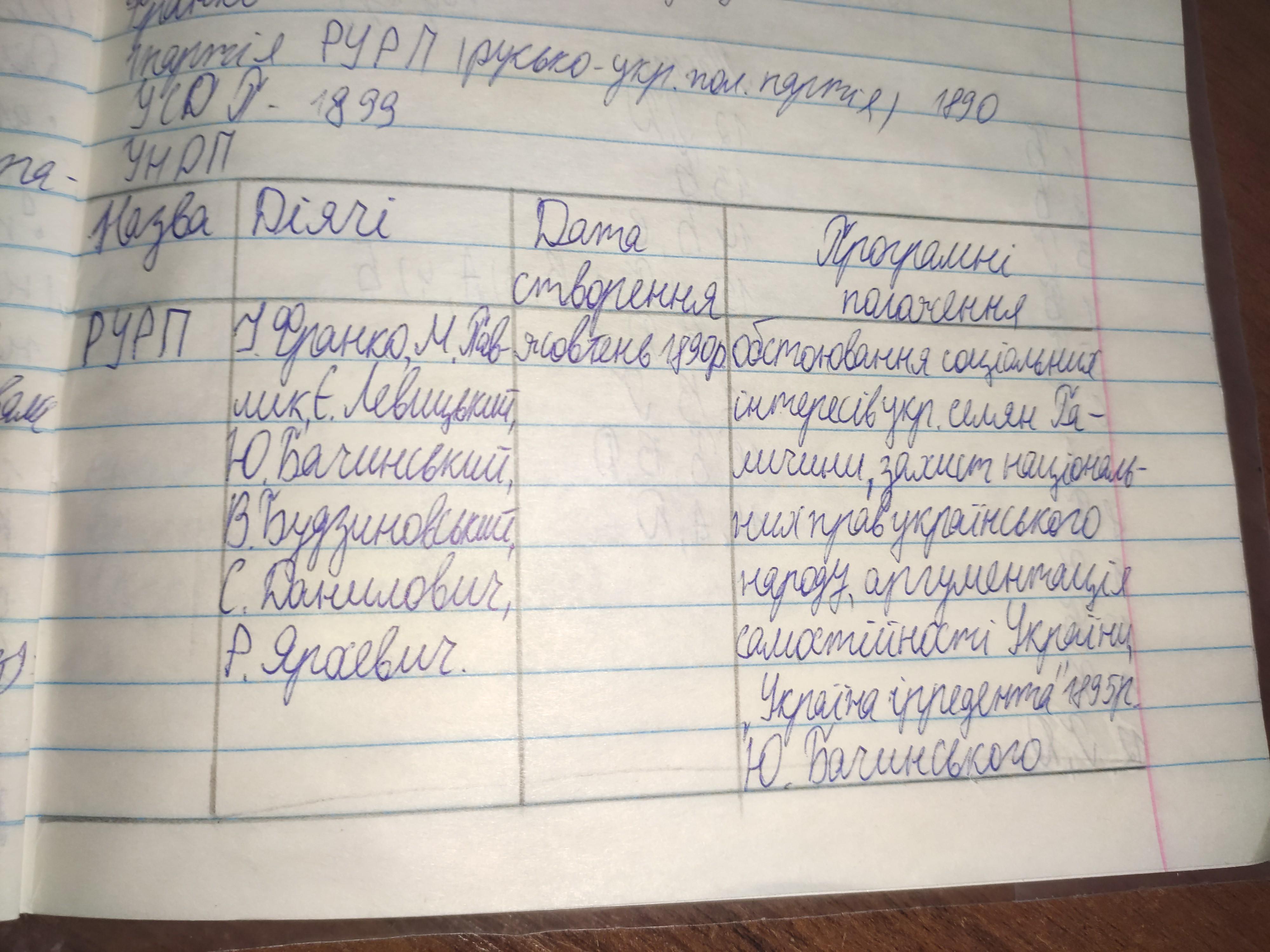 складіть порівняльну таблицю українських національних політичних партій Галичини. Критерії для порівняння оберіть самі