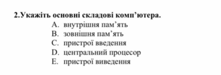 Ru:укажите основные составляющие компьютера: