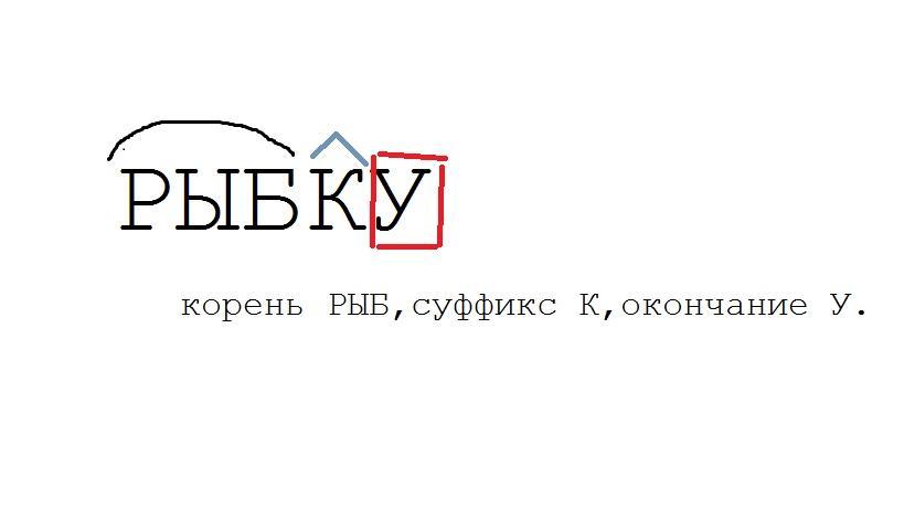 рыб (корено) к (суффикс) у (окончание) рыбк (основа)