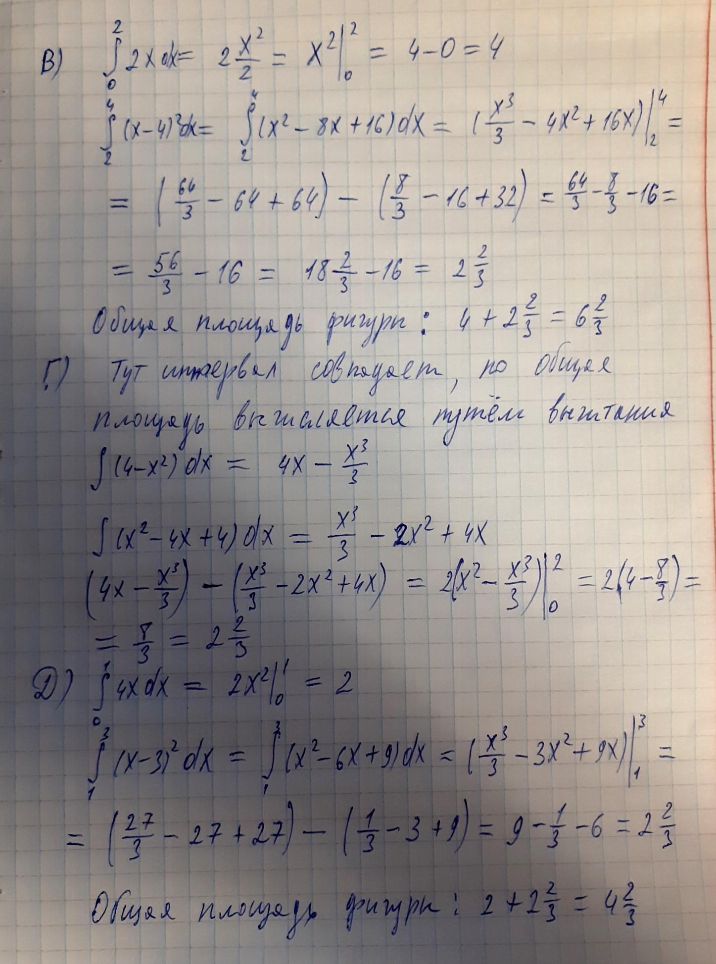 Для интервала [0;4] площадь: 16-8=8