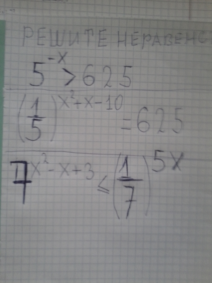3)  7^{x^2 - x + 3}   leq  bigg ( dfrac{1}{7} bigg ) ^{5x} \ \