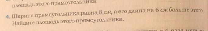 ширина прямоугольника равна 8 сантиметров длина наше сантиметр больше этого найдите площадь этого прямоугольника