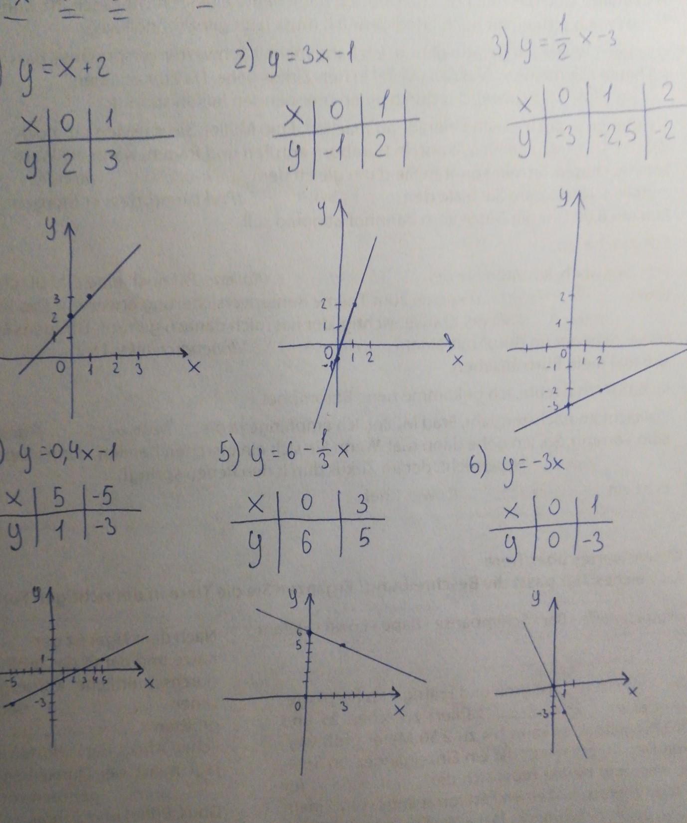 например, при х=0, y=0+2; y=2 – мы нашли координаты первой точки (0;2), так как эта функция линейная, для ее построения хватит двух точек, найдем еще одну: