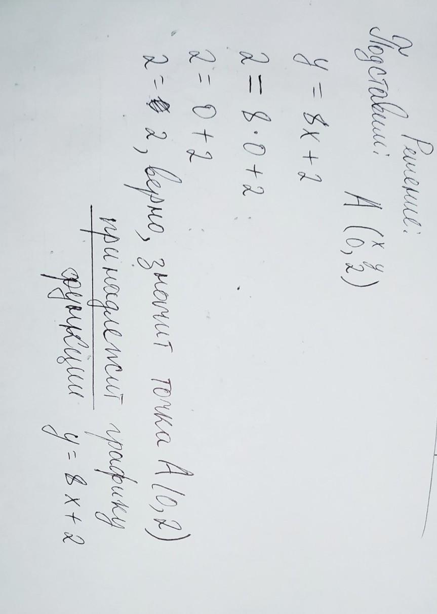 Верно. Значит точка А(0,2) принадлежит графику функции у=8х+2