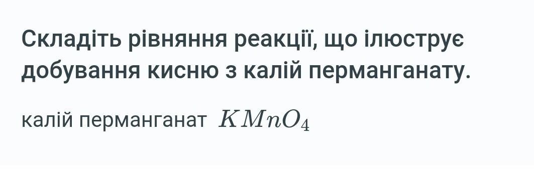 2KMnO⁴ = (под воздействием температуры t, ставится над "=") K²MnO⁴+MnO²+O²