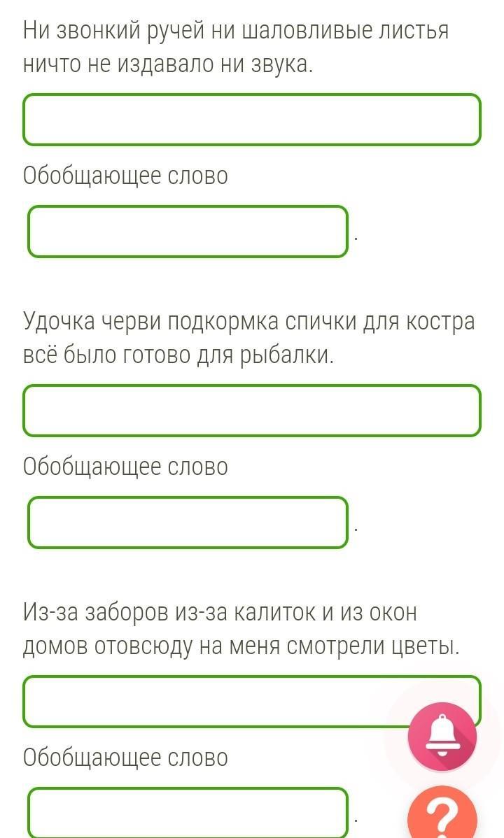 Расставь знаки препинания в предложениях. Найди обобщающее слово (словосочетание) при однородных членах предложения. Обрати внимание на место обобщающего слова относительно однородных членов.