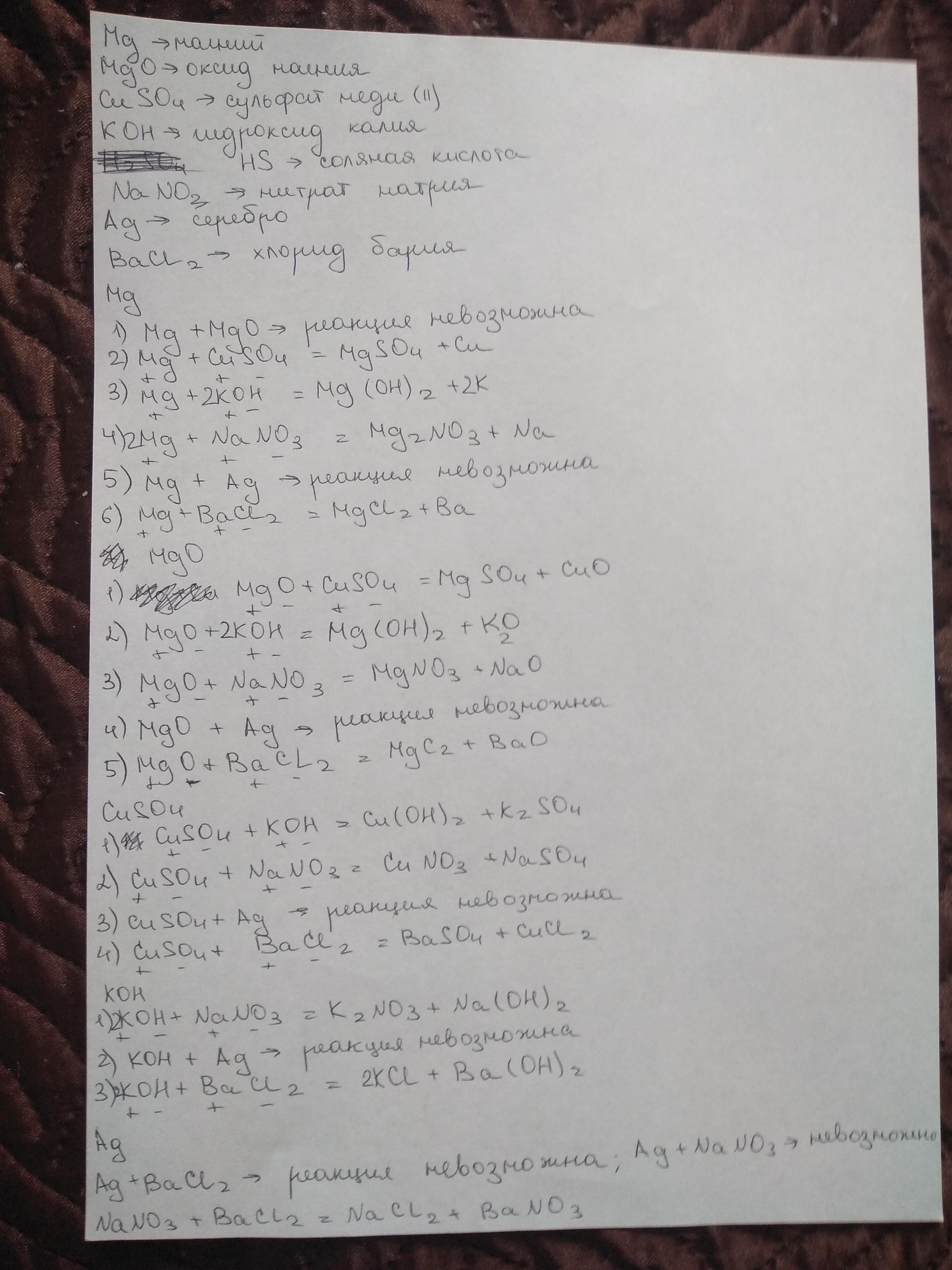 Даны вещества: магний, оксид магния, сульфат меди (II), гидроксид калия,