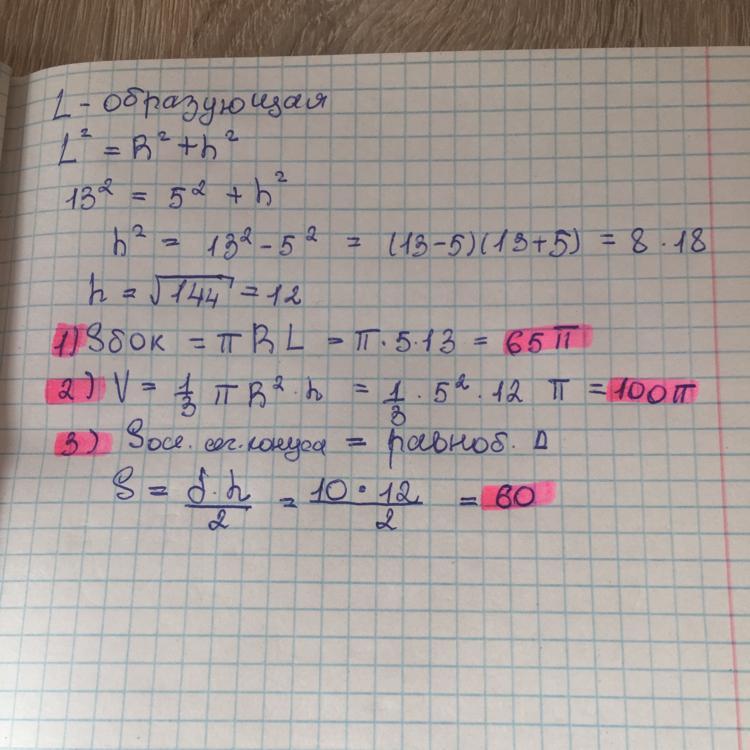 Длина образующей прямого кругового конуса равна 13 см, а радиус основания 5 см. Найдите