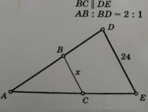 1)При параллельных Прямымых ВС и DE и секущей АD угол АВС= углу АDC т. к. соответственные, и при тех же прямых и секущей АЕ угол АСВ= углу АЕD