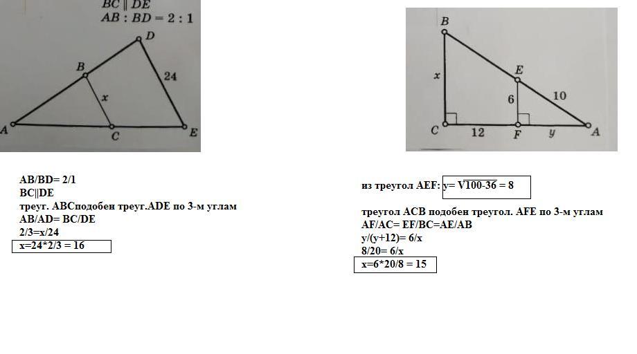 Так как у этих Треугольников есть общий угол А и ещё два равных значит эти треугольники подобны