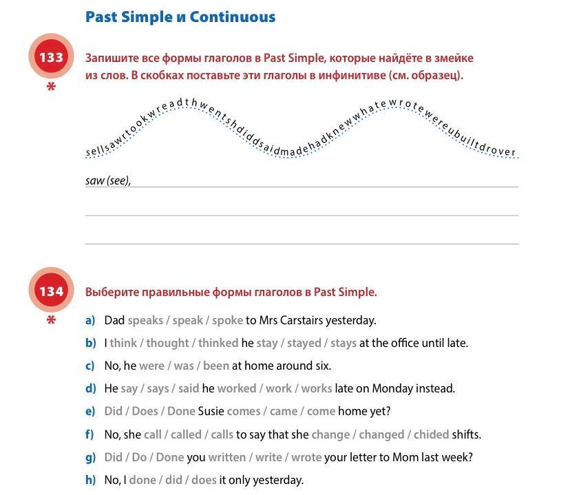 1. Запишите все формы в Past simple u Continuous Запишите все формы глаголов в Past Simpleв змейке, которые показаны на изображении. В скобках поставьте эти глаголы в инфинитиве, на изображении.