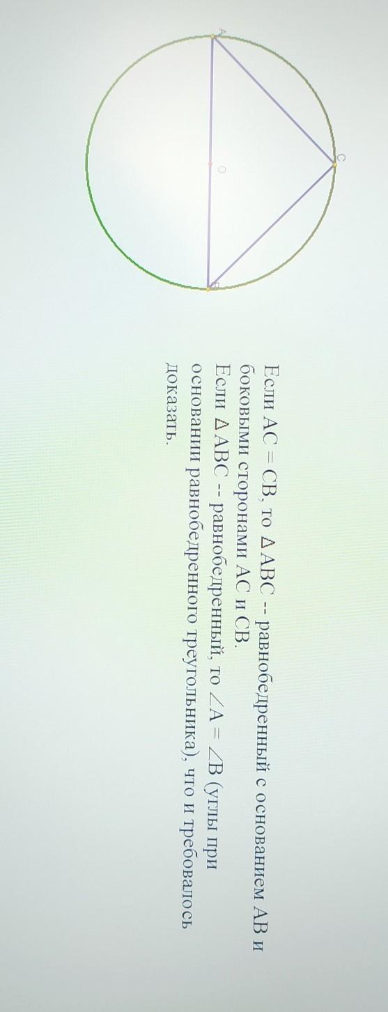 100БАЛЛОВ ДАЮ.ПОЖАЛУЙСТА ПОМОГИТЕ РЕШИТЬ.AB-диаметр окружности с центром в точке О, хорды AC и CB равны.Докажите что угл А=углу B