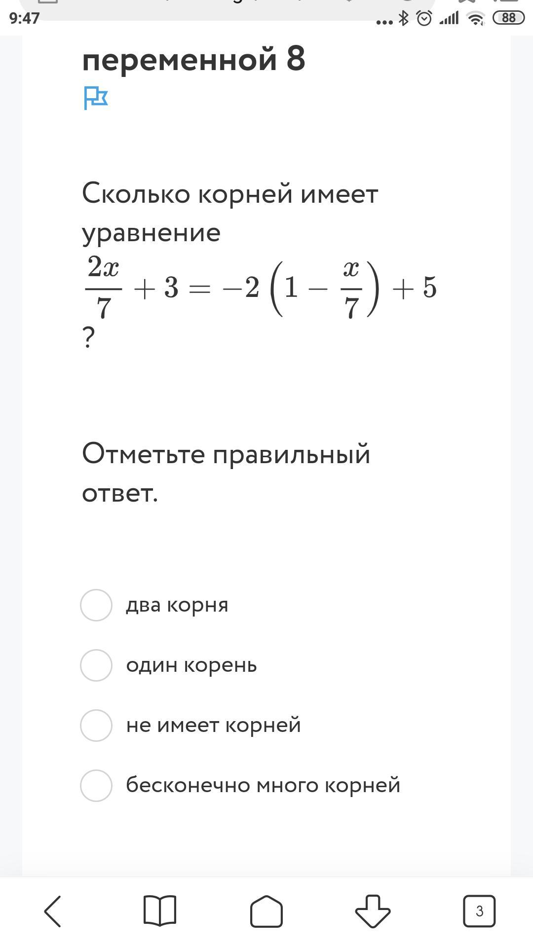 сколько корней имеет уравнение 2х 7 +3=-2(1-х/7) +5
