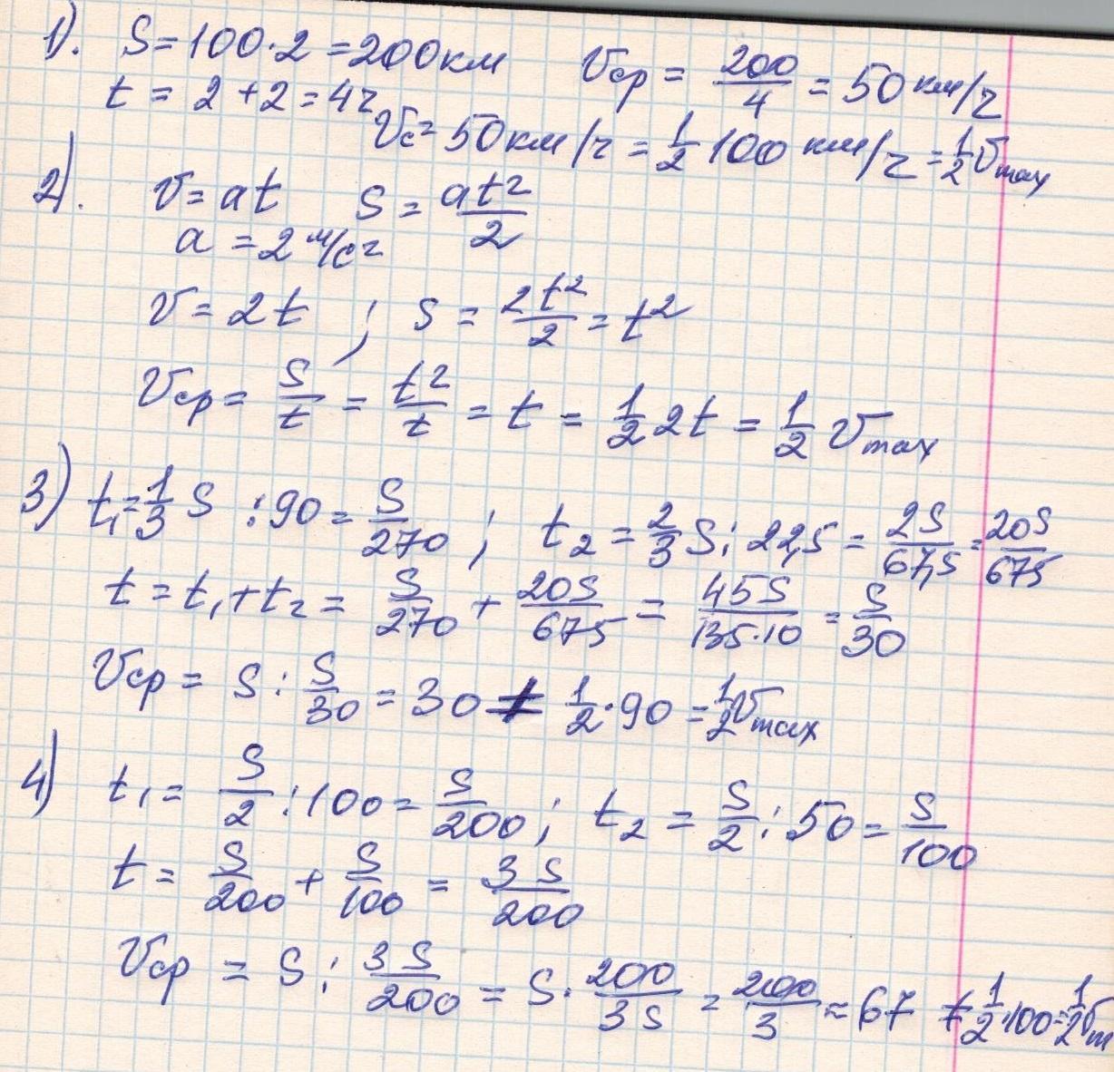 4)Машина проехала половину пути со скоростью 100 км/ч, а вторую половину — со скоростью 50 км/ч.