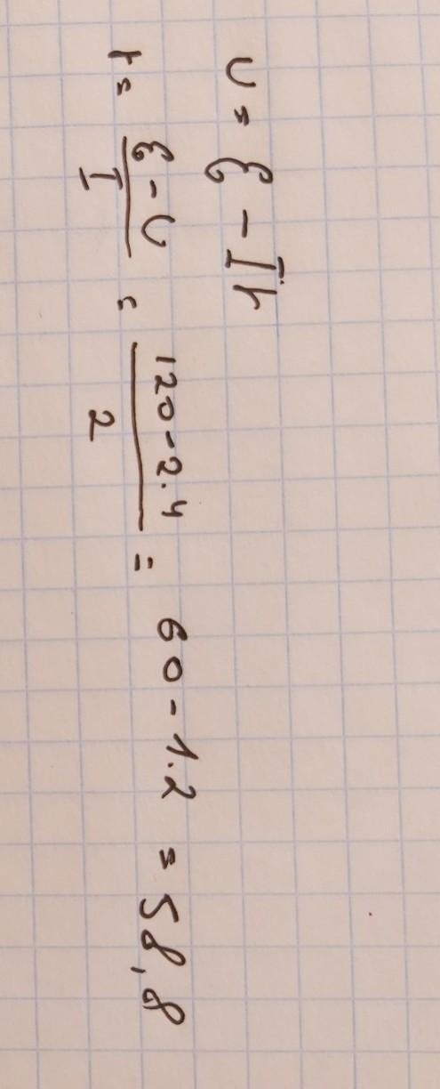 Який внутрішній опір повинен мати генератор з ЕРС=120В, щоб при замиканні його на опір 2,4 Ом, напруга в колі становила 2В.