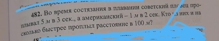 советский проплывет 100м за 60 секунд т.к. 100:5*3