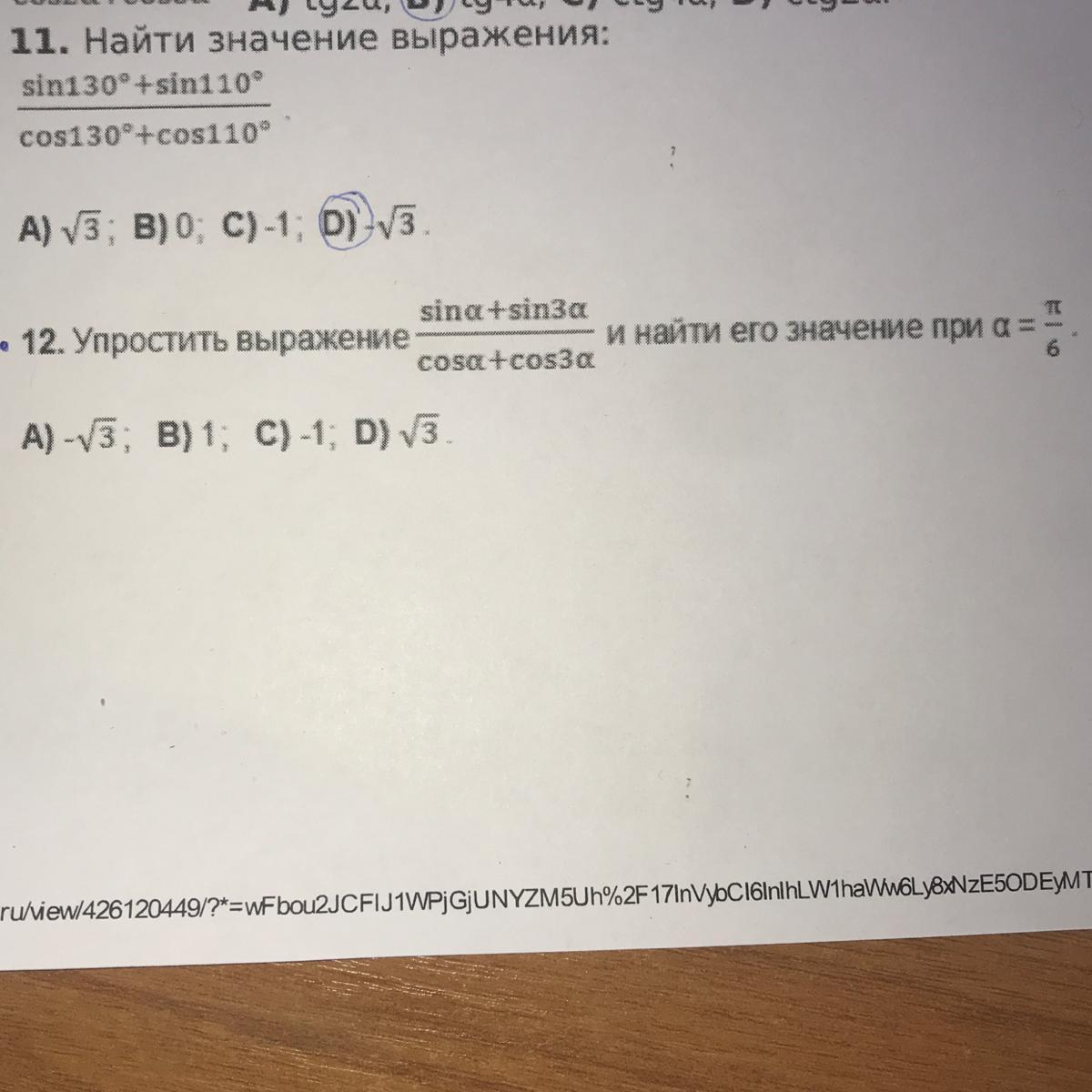 Ответ: корень из 3, мы сокращаем до tan(2x), x=n/6, получаем tan(n/3)=3^(1/2)