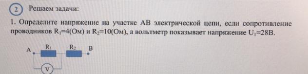 R1=4 Ом R2=10 Ом U1=28 B U=?