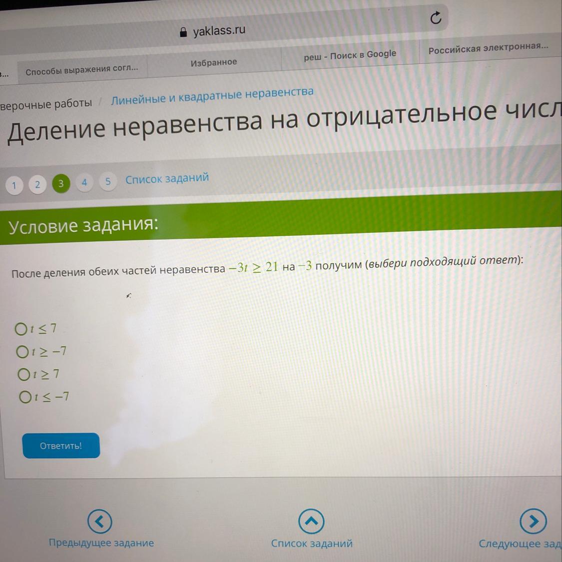 -3tgeqslant 21;;;mid div -3 \ tleqslant -7 ;;; Rightarrow ;;; langle -infty ;; , ;; -7]
