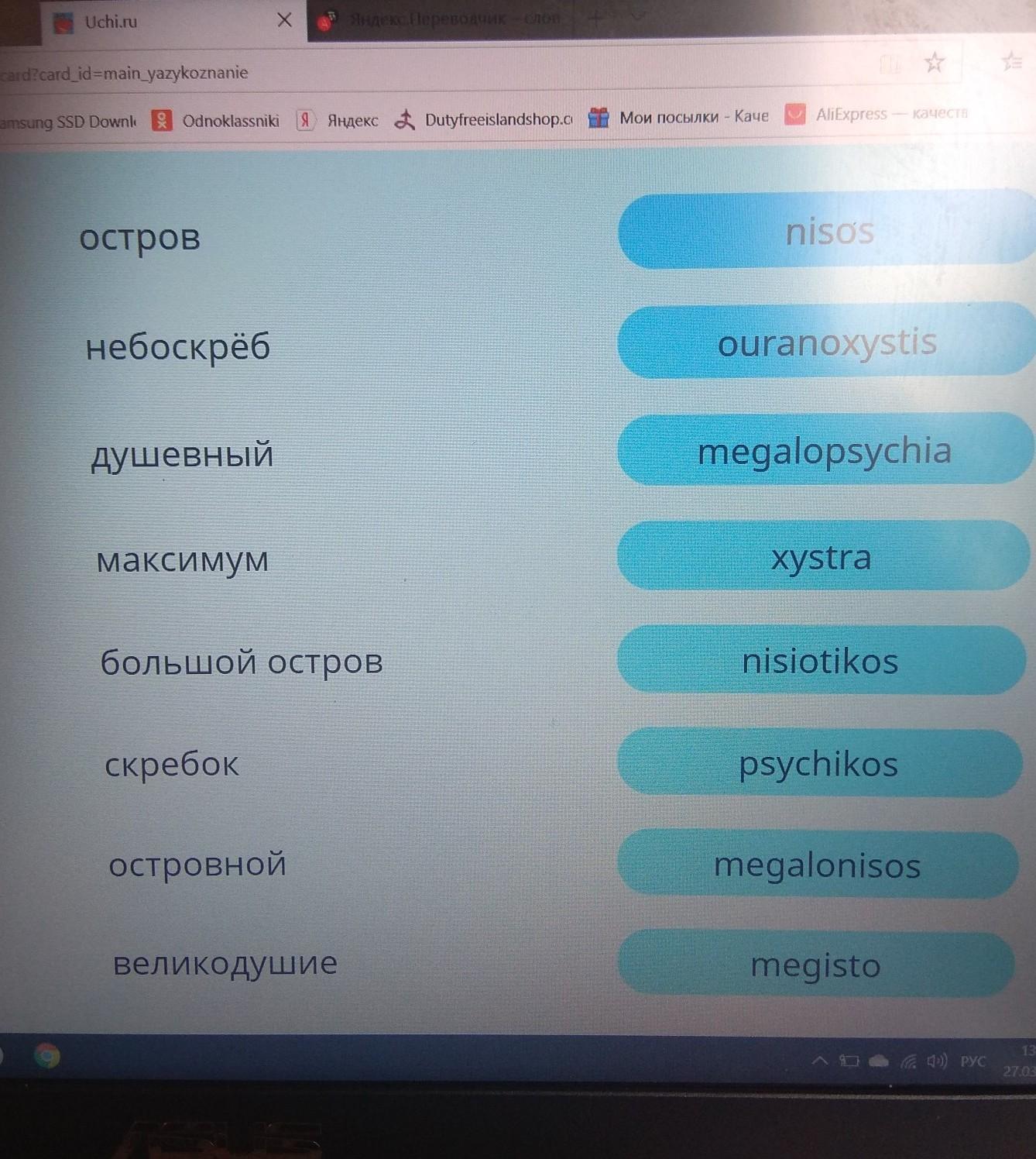 СРОЧНО используя логику и языковую догадку, расставь греческие слова рядом с их переводами
