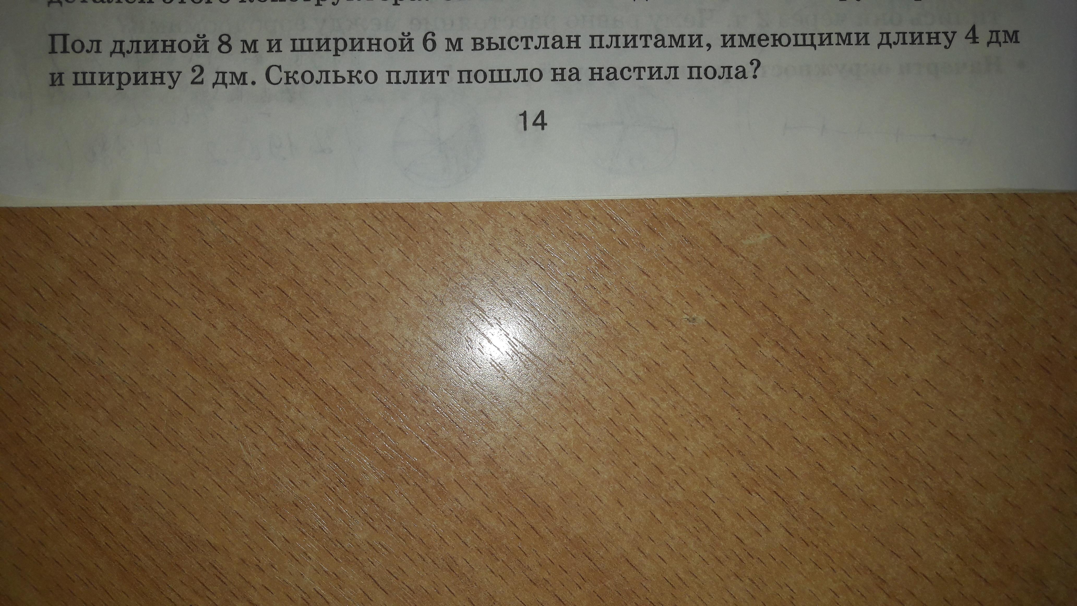 Вычисляем площадь поверхности пола, для этого умножаем длину пола на ширину. Записываем решение.
