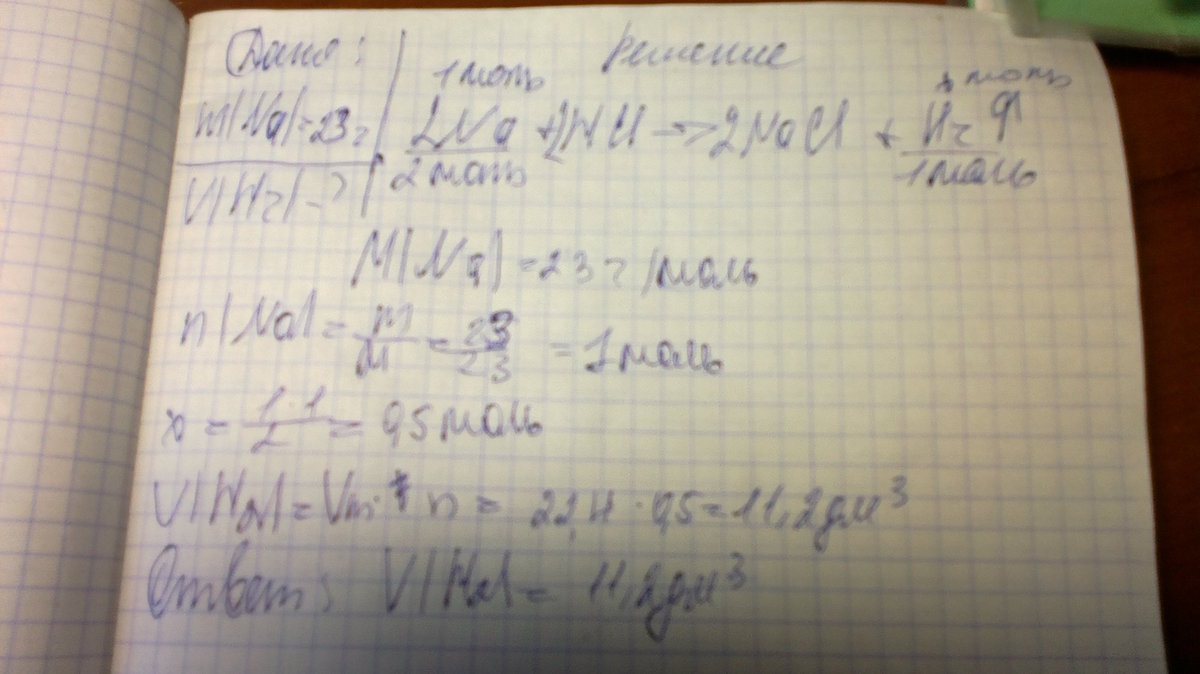 Определите объем водорода которая выделится при реакции 23 г Na с соляной кислотой.