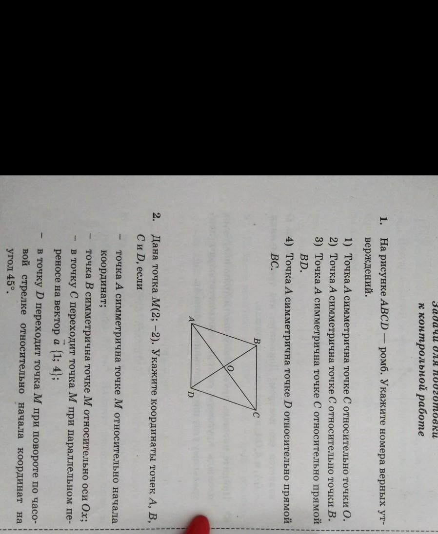1) верно, тк диагонали параллелограмма (и ромба) при пересечении делятся пополам и АО=ОС
