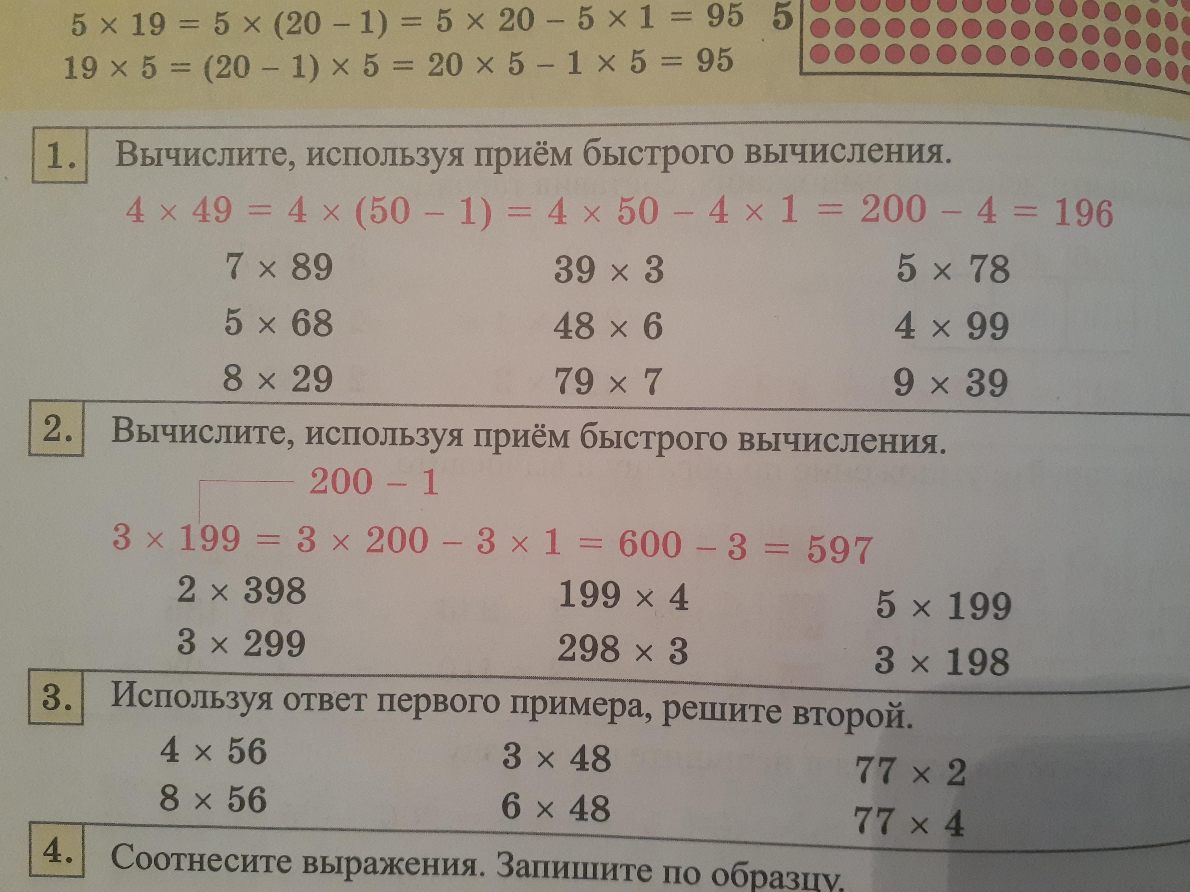 4) 298*3 = 3*300 - 3*2 = 900 - 6 = 894