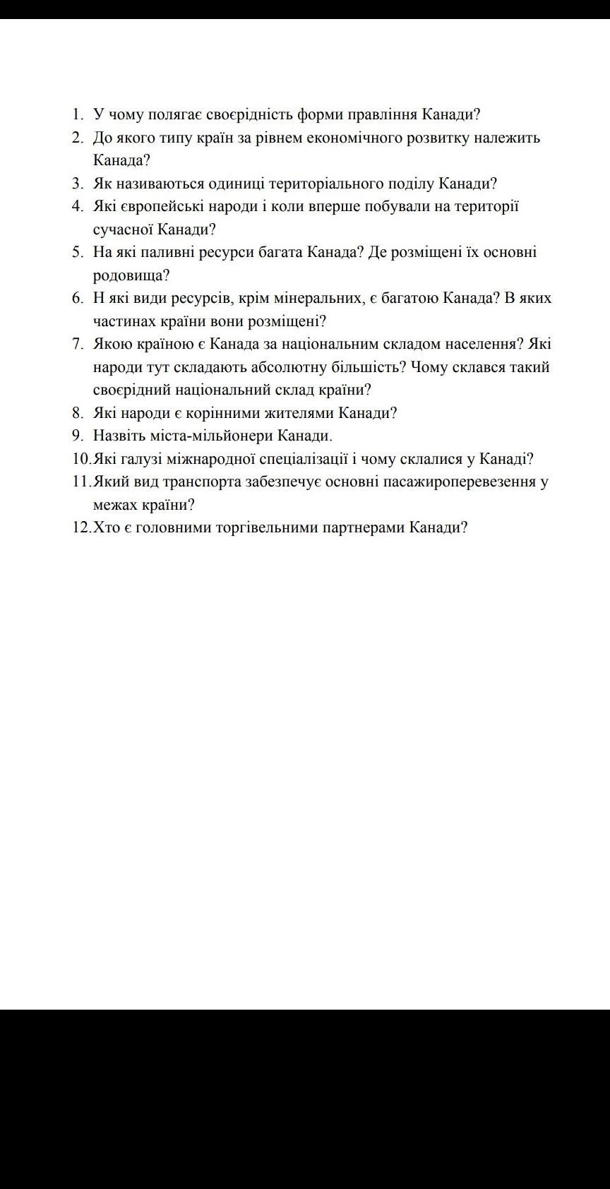 2. Канада вступила в постіндустріальну стадію розвитку.