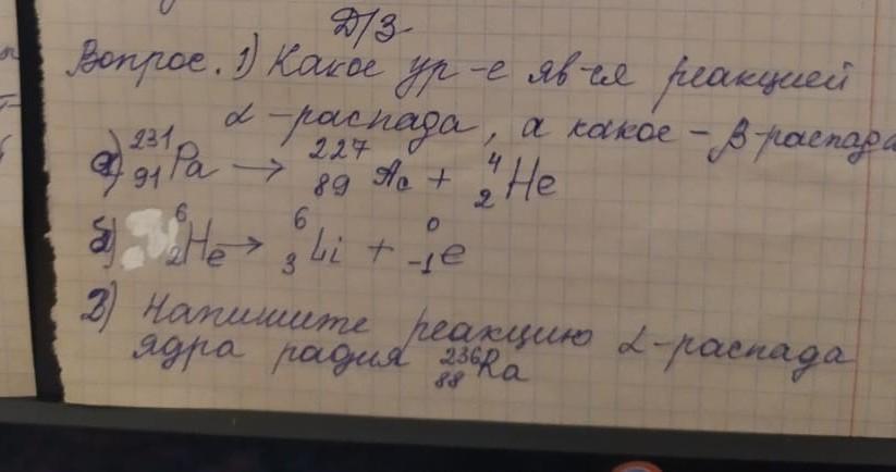 Ra^236(88)=> Rn(232 сверху, 86 снизу) +He^4(2)