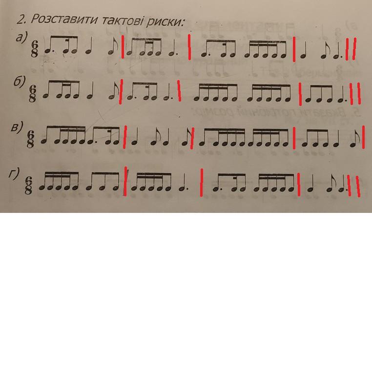 Объяснение: просто посчитала восьмыеи поставила тактовые черты