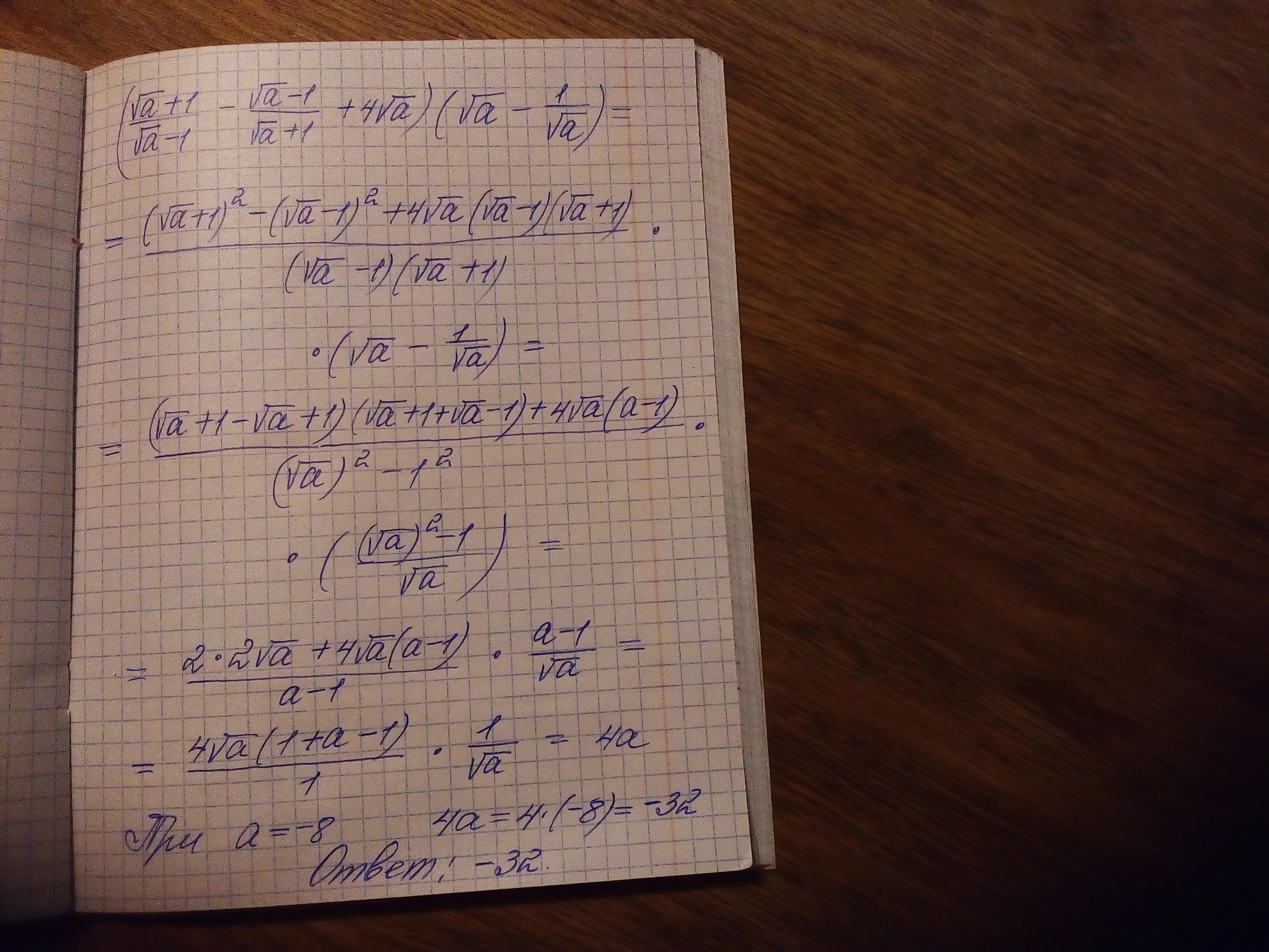 сократите выражение и решите его, если а = - 8.