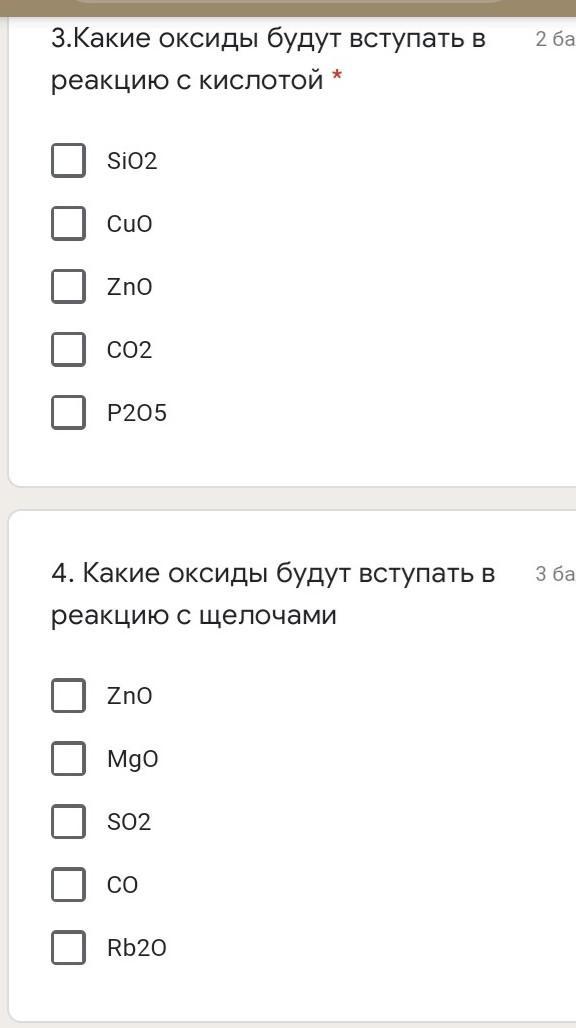 2.SO2(насчет СО не знаю, т.к. при взаимодействии со щклочью образуется соль, а СО-несолеобразующий оксид)